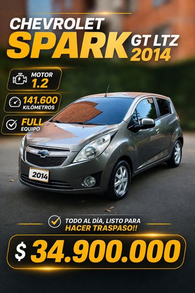 Chevrolet Spark GT LTZ 2014 Motor 1.2 141.600 kilómetros SOAT marzo 16 de 2027 Tecno marzo 12 de 2027 Aire acondicionado Dirección electróasistida Vidrios y retrovisores eléctricos Rines de lujo Exploradoras Todo al día, listo para hacer traspaso!! 34.900.000