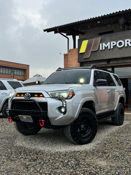 •Toyota 4Runner Sr5 •Modelo 2018 •106.901 km •Motor 4.0 V6 •275 Hp - 381 Nm •Transmisión automación secuencial de 5 velocidades •Tracción 4x4 •Capacidad para 7 pasajeros •Color plata metálico •Combustible gasolina •Cuenta con aire acondicionado y calefacción en las sillas delanteras •Placa impar (9) de Sabaneta Antioquia •Extras: •Exploradoras •Rines •Suspensión •Palanca de cambios en fibra de carbono •Volante en fibra de carbono GR •Defensa delantera