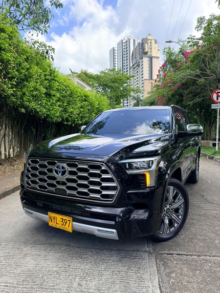 Toyota sequoia Edicion Capstone HIBRIDA , año 2024 6.300 kms, color negro, motor 3.5 twinturbo hibrido !!la mas full de la gama, la version capstone, La nueva Toyota sequoia Capstone se diferencia del resto de la familia gracias a un kit estético que añade espejos retrovisores, logos y unos rines de 22 pulgadas en cromo, Además, se beneficia de accesorios funcionales, emblemas Capstone. En el habitáculo, incorpora una tapicería en cuero de 3 filas 7 pasajeros electrica hasta la tercera fila asientos disponen de calefacción, además de ventilación. También hay iluminación ambiental, un techo panorámico y Toyota instaló vidrió acústico en las puertas delanteras para que la cabina sea un poco más silenciosa viene equipada con un motor I-Force Max 3.5L Twin-turbo V6 , que desarrolla 437 caballos de fuerza y 583lb de Torque, estribos electricos, version especial, cogineria bitono blanco negro, acabos en madera, Este vehículo tiene capacidad de arrastrar hasta 12.000lb. Equipa Toyota Safety Sense 2.5 , qué incorpora un sistema pre-colision que alcanza a detectar personas , control crucero adaptativo en rango , advertencia de cambio de carril , cambio automático de luces bajas y altas. Sistema de entretenimiento JBL con 12 bocinas internas , Estribos de lujo, retrovisor digital con pantalla , cámaras 360 Grados , suspensión adaptable, calefacción y aire acondicionado en todos los asientos , techo panorámico y cargador inalámbrico, pantalla de c14 pulgadas. ENTREGA INMEDIATA $495’000.000 Recibo vehículo de menor o mayor valor