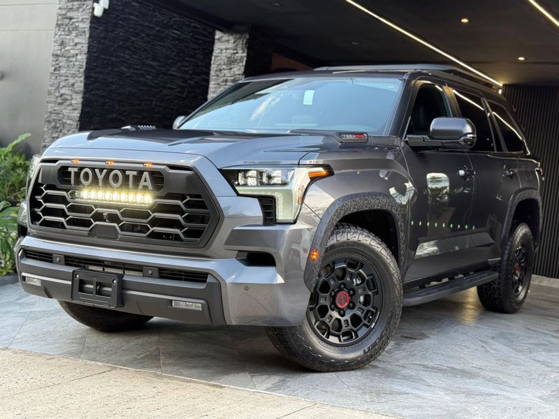 Toyota sequoia Edicion TRD PRO HIBRIDA , MODELO 2026, 0 kms para estrenar, color gris motor 3.5 twinturbo hibrido. Version trd pro: suspencion Fox, kit de altura, barra estabilizadora trd pro, rines 18 BBS- FORGET, volante personalizado trd pro, palanca y boton de encendido trd pro, lampara led delantera, cogineria personalizada, ampliacion que terminado especial, exosto deportivo con doble salida trd pro, partilla de techo, mas caballos de fuerza, suspencion mas suave, camaras 360 grados, sonido jbl con bajo, carroseria mas liviana. En el habitáculo, incorpora una tapicería en cuero de 3 filas 7 pasajeros electrica hasta la tercera fila asientos disponen de calefacción, además de ventilación, un techo panorámico y Toyota instaló vidrió acústico en las puertas delanteras para que la cabina sea un poco más silenciosa viene equipada con un motor I-Force Max 3.5L Twin-turbo V6 , que desarrolla 437 caballos de fuerza y 583lb de Torque, Este vehículo tiene capacidad de arrastrar hasta 12.000lb. Equipa Toyota Safety Sense 2.5 , qué incorpora un sistema pre-colision que alcanza a detectar personas , control crucero adaptativo en rango , advertencia de cambio de carril , cambio automático de luces bajas y altas. Sistema de entretenimiento JBL con 12 bocinas internas , Estribos de lujo, retrovisor digital con pantalla , cámaras 360 Grados , suspensión adaptable, calefacción y aire acondicionado en todos los asientos , techo panorámico y cargador inalámbrico, pantalla de c14 pulgadas. ENTREGA INMEDIATA 569’000.000 Recibo vehículo de menor