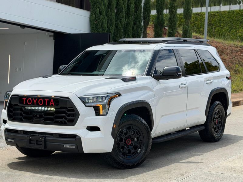 Toyota sequoia Edicion TRD PRO HIBRIDA , año 2026 0 kms para estrenar, color blanco motor 3.5 twinturbo hibrido. Version trd pro: suspencion Fox, kit de altura, barra estabilizadora trd pro, rines 18 BBS- FORGET, volante personalizado trd pro, palanca y boton de encendido trd pro, lampara led delantera, cogineria personalizada, ampliacion que terminado especial, exosto deportivo con doble salida trd pro, partilla de techo, mas caballos de fuerza, suspencion mas suave, camaras 360 grados, sonido jbl con bajo, carroseria mas liviana. En el habitáculo, incorpora una tapicería en cuero de 3 filas 7 pasajeros electrica hasta la tercera fila asientos disponen de calefacción, además de ventilación, un techo panorámico y Toyota instaló vidrió acústico en las puertas delanteras para que la cabina sea un poco más silenciosa viene equipada con un motor I-Force Max 3.5L Twin-turbo V6 , que desarrolla 437 caballos de fuerza y 583lb de Torque, Este vehículo tiene capacidad de arrastrar hasta 12.000lb. Equipa Toyota Safety Sense 2.5 , qué incorpora un sistema pre-colision que alcanza a detectar personas , control crucero adaptativo en rango , advertencia de cambio de carril , cambio automático de luces bajas y altas. Sistema de entretenimiento JBL con 12 bocinas internas , Estribos de lujo, retrovisor digital con pantalla , cámaras 360 Grados , suspensión adaptable, calefacción y aire acondicionado en todos los asientos , techo panorámico y cargador inalámbrico, pantalla de c14 pulgadas. ENTREGA INMEDIATA 569.000.000$ Recibo vehículo de menor